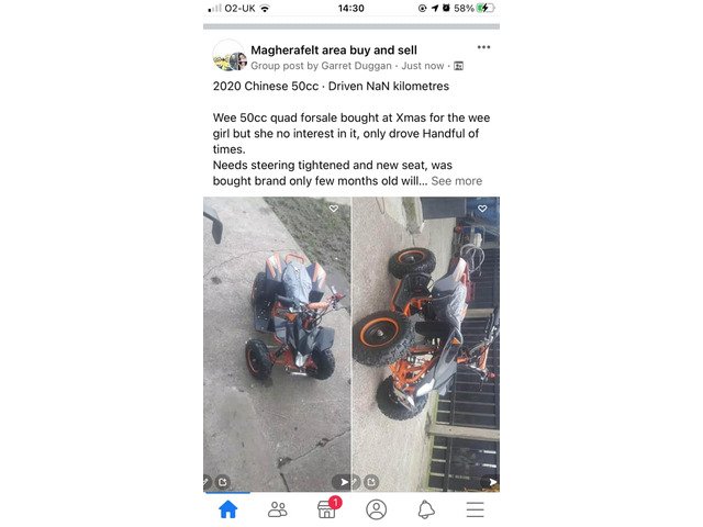 50cc quad only drove few times, starts first pull, needs steering looked at and a new seat