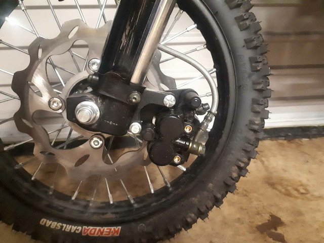 Stomp Branded 140r like new only been in garden.140r has sp forks and twin pot front brake system, dnm rear shock, kenda mx tyres .The 140r sells at £1499 so its a bargain at £1275 no swaps or silly offers .Bike in Antrim.DESCRIPTION