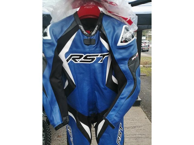 Rst 1pc leathers size 44 tt evo blue black Enniskillen motorcycles 07484739152 Bt74 6GQ