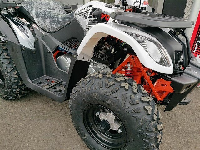 Fully auto 200cc 4-stroke, forward and reverse, 3 hydraulic disk brakes, and double wishbone suspension with adjustable pre load. Front & Rear carry racks with wrap-around plastics to keep you dry.