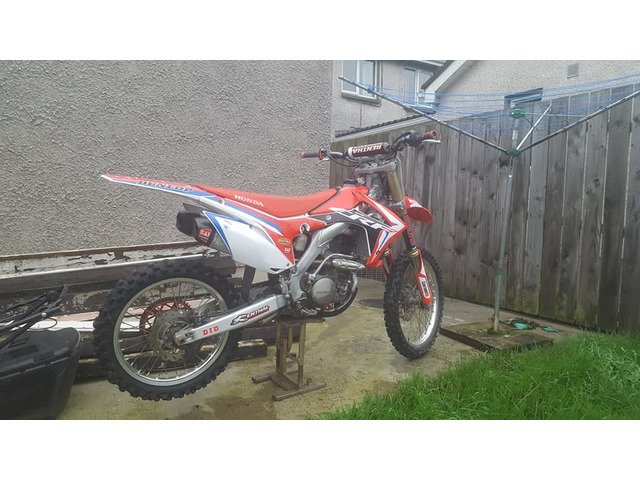 2017 crf250r very tight clean bike .green lane use only never raced.front forks just serviced new clutch fitted full yoshi muir exhaust.well serviced an mantained .MAY trade for good 125 with cash .WHATS OUT THERE msg me for details thamks