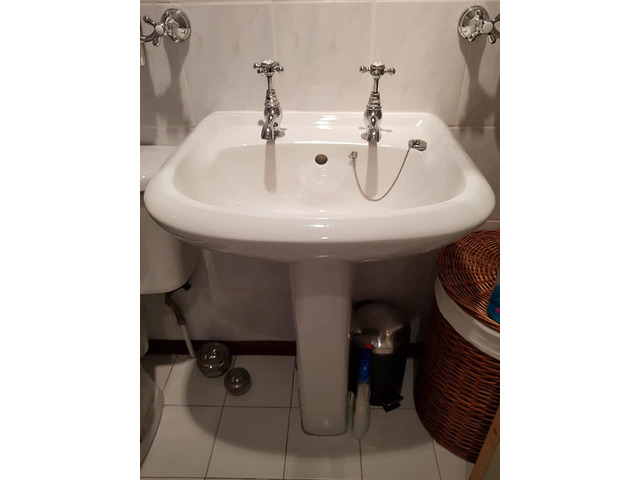 3 piece white bathroom complete with taps