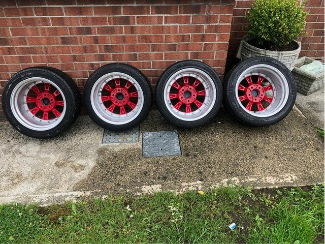 I have a set of 5x114.3 SSR RS8 watanbees for sales.... 2 piece split rim.. the faces have been refurbished to a high gloss red and the chrome lips have been polished.