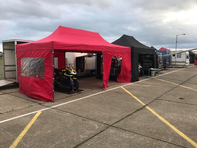 Red 6x3m popup. Brilliant heavy duty quality - age related wear and tear. Used for 2 years, most recently this past weekend with torrential rain throughout and kept us dry day and night. £150