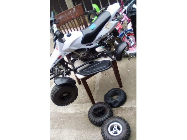 Needs front left bearings and back left puncture paid 200 will take 180 no offers I bought it like this quad can be seen going and driving in front of you no offers