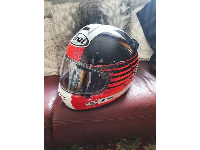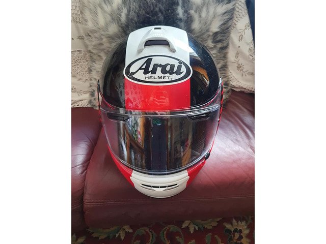 Helmet only 18 months old , wore for about 500 mile . Comes with spare pinlock insert and an arai sticker kit .