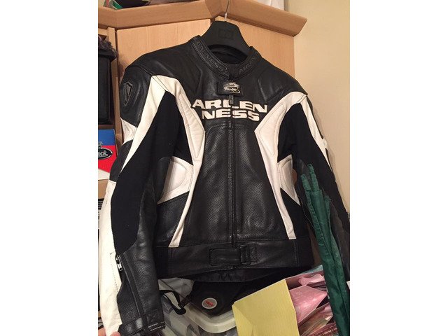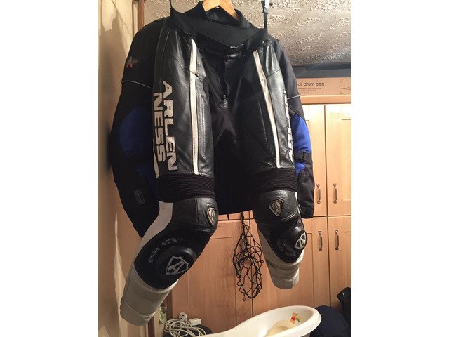 Arlen Ness 2 piece motorcycle leather suit.