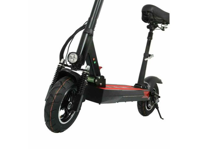 4.The e-scooter carries 10*3.0" inflatable tire, with disc brake and LED display.