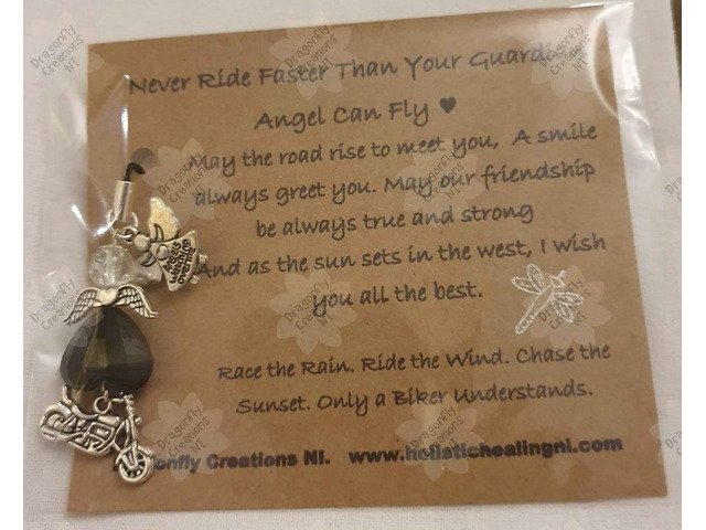 Perfect gifts for the biker in your life, guardian/gremlin bells to attach to your bike to ward off those pesky gremlins, bells come with a lucky charm and the legend of the gremlin bell, lots of styles to choose from. Guardian angels and keyrings are also available. All items will be posted. Orders with safe payments can be made via my shop on etsy, no etsy account needed. Reviews can also be seen, you won't be disappointed.