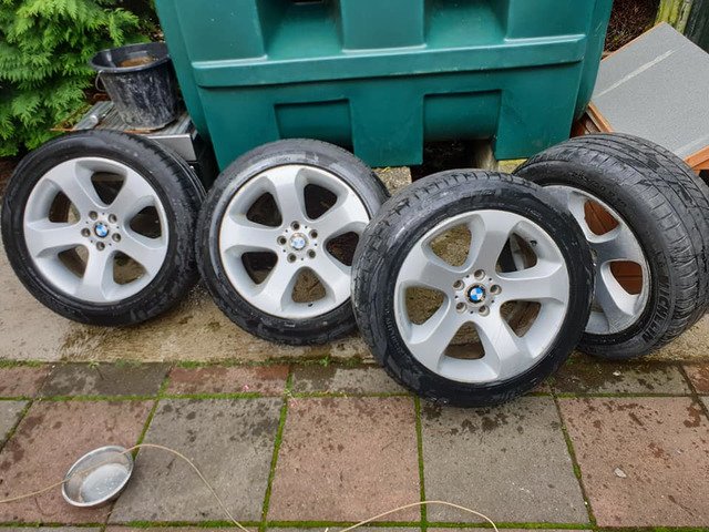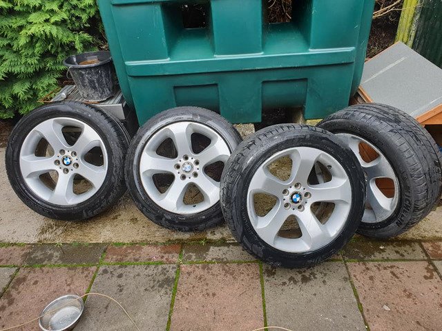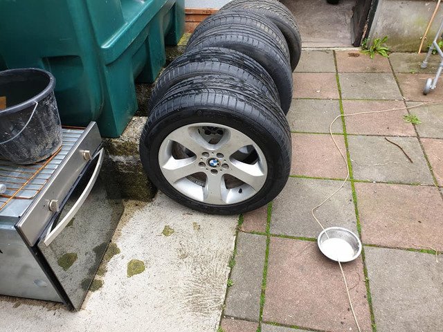 BMW 19inche alloys fat fives two brand new back tyres and front tyres nearly like new no cracks or welds £300 ono