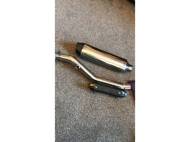 Comes with small heat shield, down/link pipe and end can/silencer