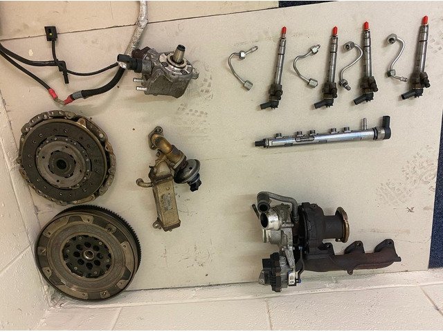 COMPLETE TURBO COMPLETE WITH MANIFOLD, AIRCON PUMP, ALTERNATOR, STARTER MOTOR, DUAL MASS FLYWHEEL, CLUTCH PRESSURE PLATE & FRICTION PLATE, HIGH-PRESSURE FUEL PUMP WITH INJECTORS, FUEL RAIL, AND FUEL PIPES.