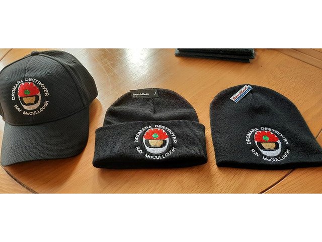 3 different styles of the Dromara destroyer , Ray Mccullough hats for sale £15.00 , money going to Rays choosen charity the air ambulance , pm me for details