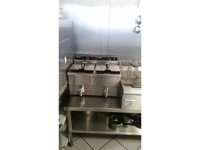 Selection of catering equipment for sale. Hot plate, Bain Maire dry well, Lincat oven, Stainless steel benches and sink, Salad display fridge, Tables and chairs, ect open to offers.
