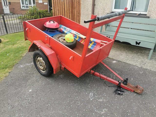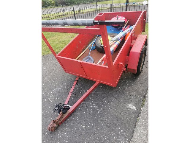 Handy wee trailer, bought for transporting kayak but have now sold kayak. Trailer is on leaf springs, has full working lights, two new tyres and a spare wheel. Steel ladder rack 280