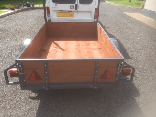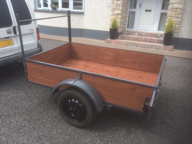 6f x 4ft car trailer just been refurbished, all wood replaced, repainted, new lights, safety chain fitted, good tyres, ladder bar.