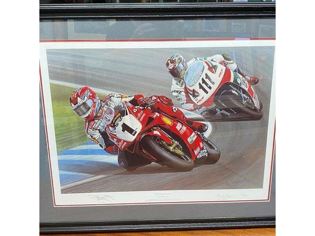 CARL FOGARTY RAY GOLDSBROUGH LIMITED PRINT - "THE ONE & ONLY" ORIGINAL SIGNATURE Isle of Man TT