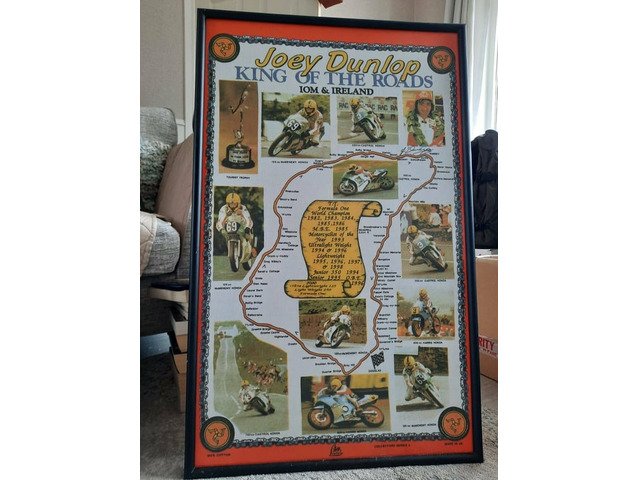 Commemorative Joey Dunlop TT Linen Teatowel in frame.
