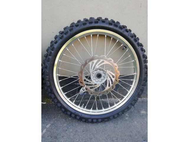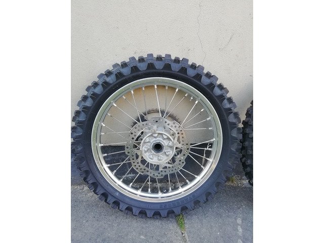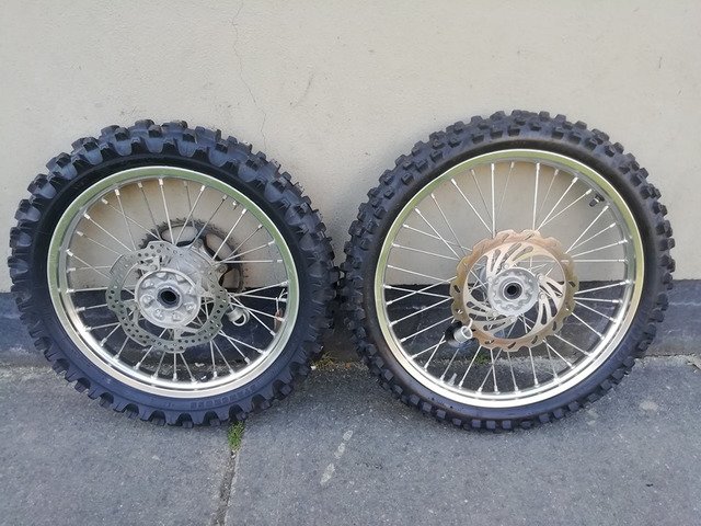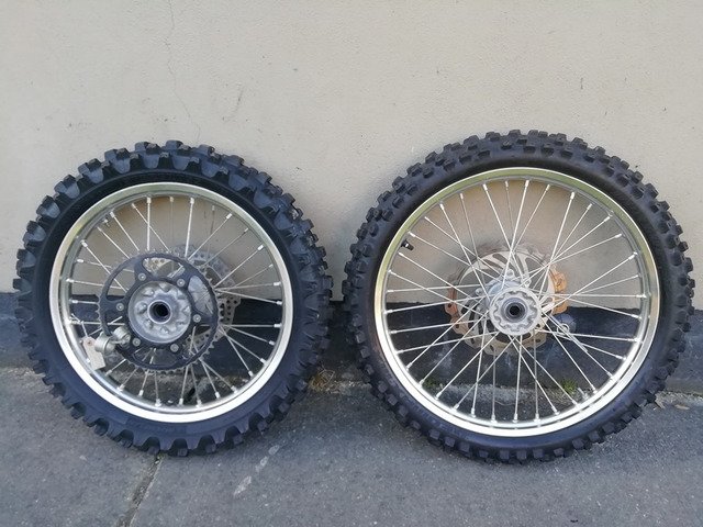 Set of complete wheels with disks and sprocket excellent condition and good tyres. Come of a 2016 crf250. Will fit 450 also. 15+16