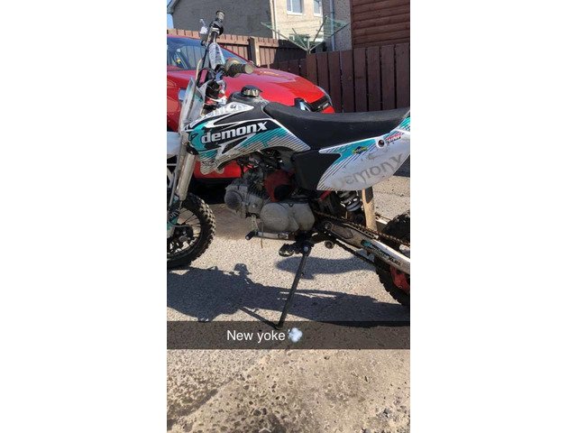 Demon x xlr2 140 bike needs new petrol tank as one on it is cracked and front plastic slightly damaged other than that bike is 100 percent only selling because can’t fit dual exhaust on this £650 ono may consider swapping for another 140