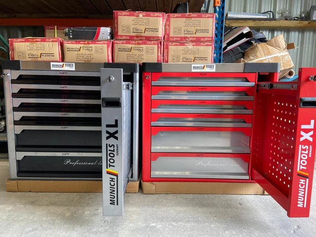 BRAND NEW XL MUNICH GERMAN 374 PCS 6 drawer complete with tools,pullout cabinet, aluminium worktop bench