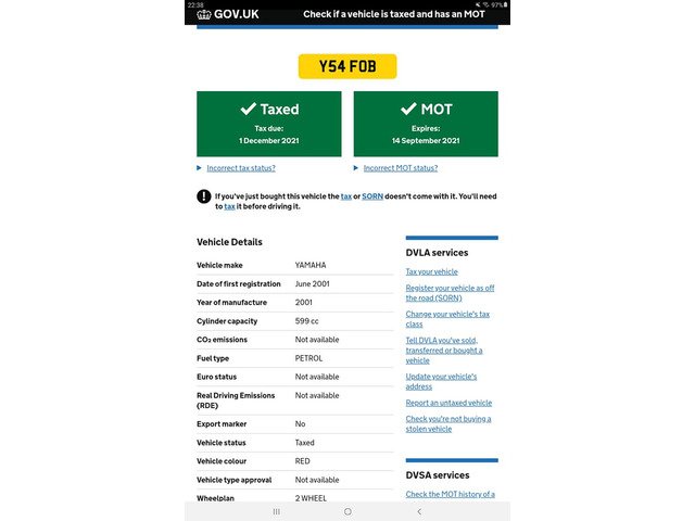 2001 Yamaha YZF R6 600 5mt model which as been completely rebuilt and a lot of new parts to include Genuine Yamaha top fairing/side fairings/Tyres Brakes new battery coil sticks plugs radiator stainless nuts bolts etc etc Mot a lot of money spent on the bike in excellent condition first to see will buy PM me if you have any interest....