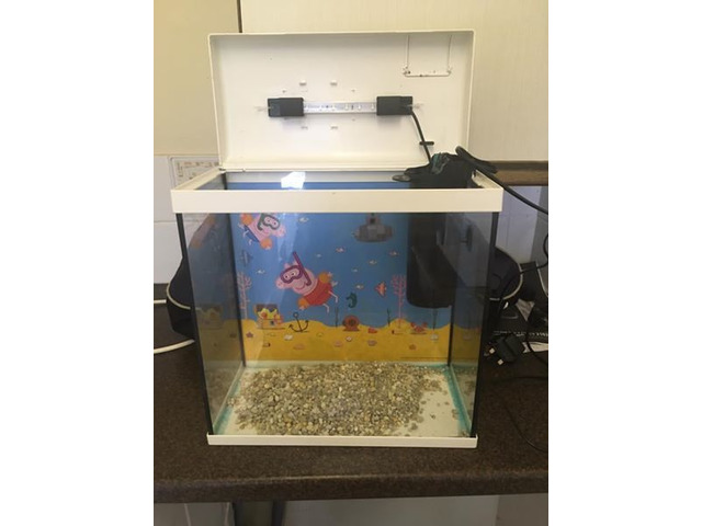 Fish tank with light and filter and stones..