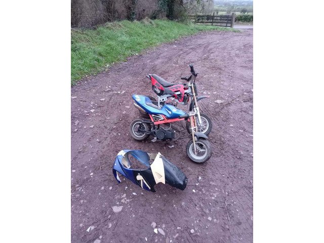 Have this mini moto 49cc had her going like 20 minutes ago but the pull cord isn't catching to the fly wheel now so sold as non runner would need carb cleaned aswell and brakes cheap little project only reason I'm selling as count be arsed working at the thing anymore 60 quid no less collection Fintona may deliver if near but need fuel money also have that mini dirtbike 40 quid needs battery r battery charged wiring isn't the best but I had the wheel spinning 2 months ago will take 200 for both but selling separate pm if intrested and don't ssk if I take any less cuz thats as less as ur getting it