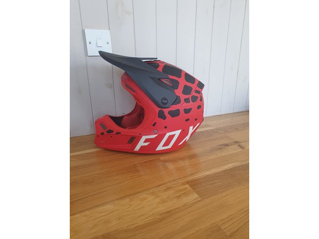 Fox V3 helmet, size medium, hardly used have the helmet bag, and will give the fox googles with it the helmet, have two sets of tinted lenses.
