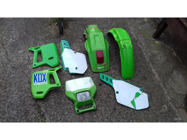 Full original 1990 kdx 200 plastics both lights work back mudguard have a small crack under where the seat covers side rear fender has a crack other wise spot on