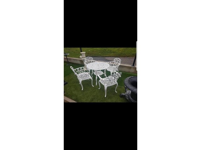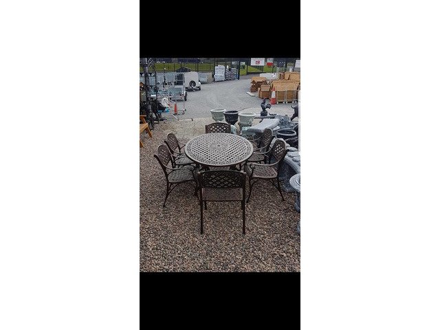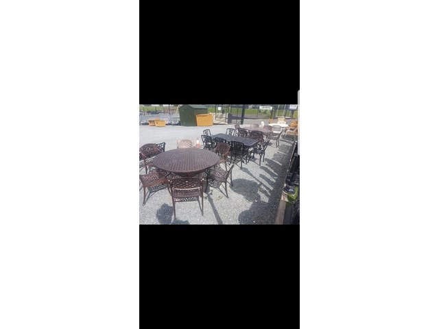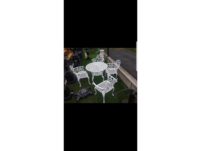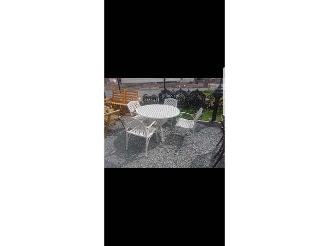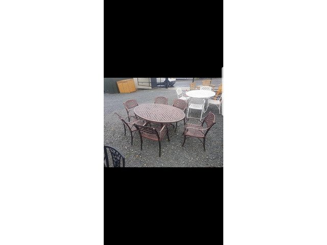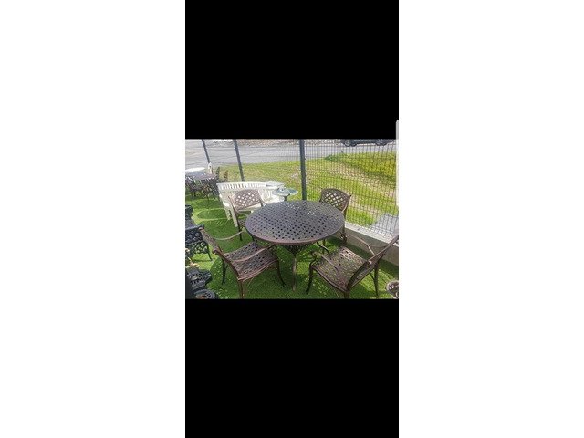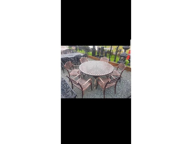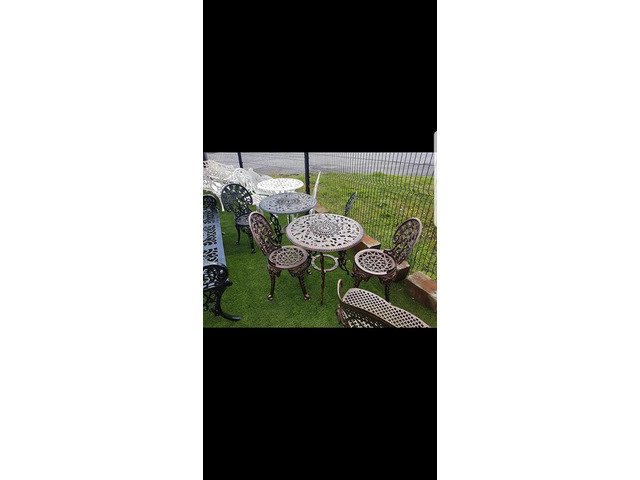 We have many different styles and sizes available of our cast aluminium garden furniture table and chairs sets, best to to call up to our yard someday and I can show you what we have in stock at Armagh Trailers and Garden Furniture 43 hamiltonsbawn road co Armagh BT601FH opposite the Mot centre open Monday to Friday ten to five Saturday ten to one tel 07808152833