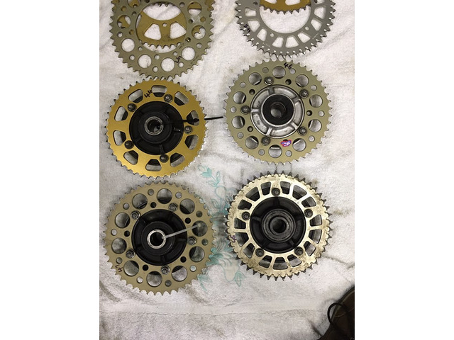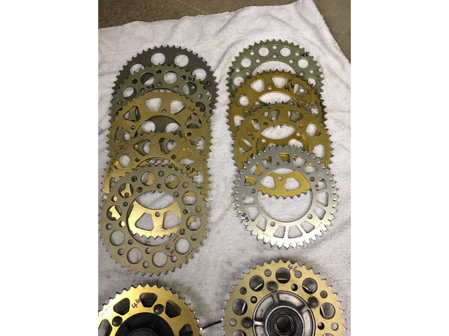 GSXR rear 520 race sprocket clearance. all the sprockets pictured are 5-hole and fit gsxr 600/750 01-07 , gsxr 1000 01-08 and maybe more. they are mostly renthal or talon and all are in excellent condition, £15 each or 5 for £60, carriers £15 each plus postage. the sizes i have are are 44, 45 x 3, 46 x 3, 47 x 2, 48 x 3 and a 51. also have cush rubbers if required