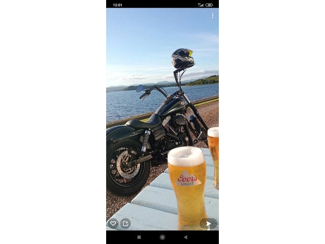 Harley Davidson Dyna street Bob 07//// 1585cc with stage one map k&n air filter Vances and Hines exhaust . 12" aps bars new Avon cobra tyres wheel bearings break pads and service bike has a full service history was UK bike very well looked after led headlight . Bike needs for nothing cash sale only 9450 Ono phone for more info 0871697395