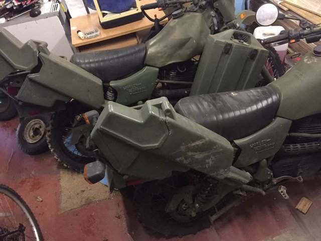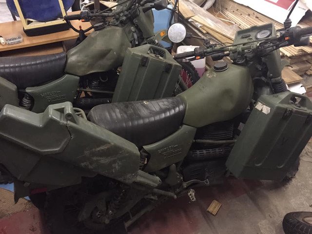 Ex-military bikes complete with gun rack and document boxes on the front. Complete bike with release certificate from mod that allows you to register them for road use. Call for details 07785306781