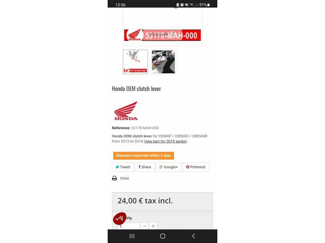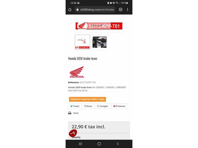 Brand new unused brake and clutch lever to suit CB500F/CB500X/CBR500R - 2013 to 2018.