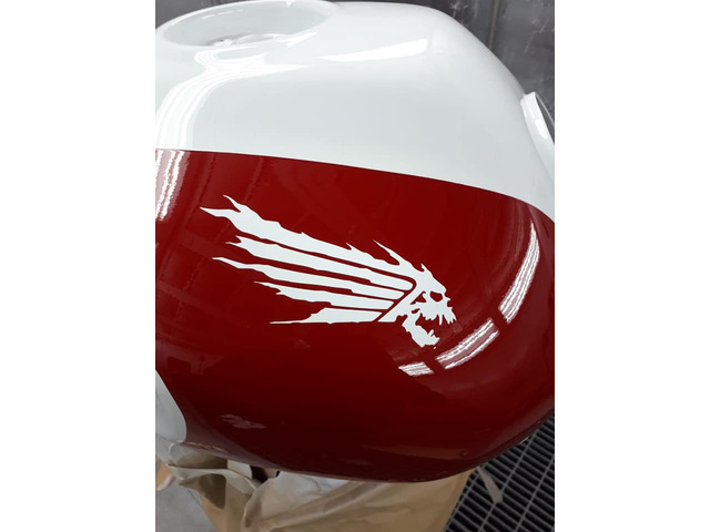the 93 one was revamped . the bike was sprayed in its original colours of red and white.