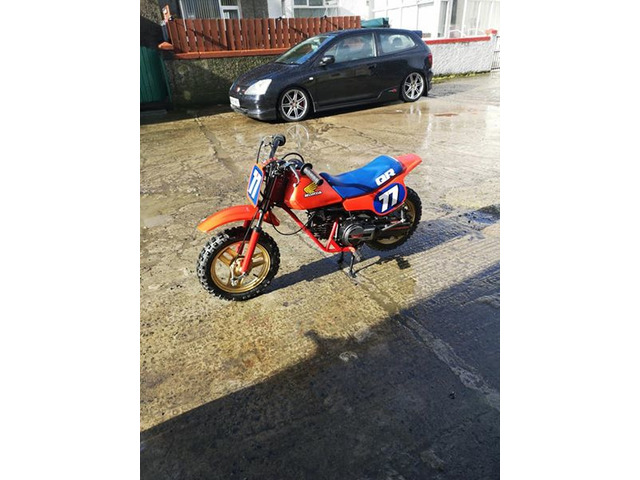 Very rare honda qr 50 will suit collector starts runs and stops new tyres new forks had engine work by ak scramblers to leave the wee bike running perfect I think the bike is 1988. If I don't get what am asking I will just put it away because the money is only on the rise