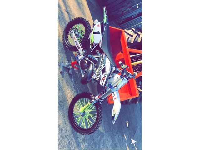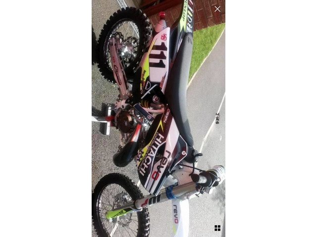 Absolutely immaculate husqvarna tc250 ..... this bike was a spare race tram bike that was never used ..... ther was a standard piston kit put in the bike .... and when the bike arrived from England to me i put a genuine hour clock on her and its readin just under 12 hours .... if interested let me no i have my eye on a 2019 bike ..... i dont care if this bike sells or not so no stupid offers as they will be ignored... the bike will also come with full husqvarna books and jets and a brand new fmf pipe or pro circuit shorty either to pick from .... the bike has allways been run on fully synthetic bellray 2t and extremely well looked after