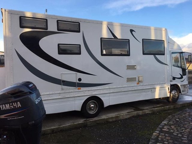 Iveco race truck ready to go really well done inside , plent of room for 6 people to sleep and a couple of bikes , shower , recent new boiler , tv , fridge , 5x4m electric awning with all the sides, we lorry is bullet proof , bigger lorry forces sale , can deliver on the seatruck to heysham for around £300 , any test welcome