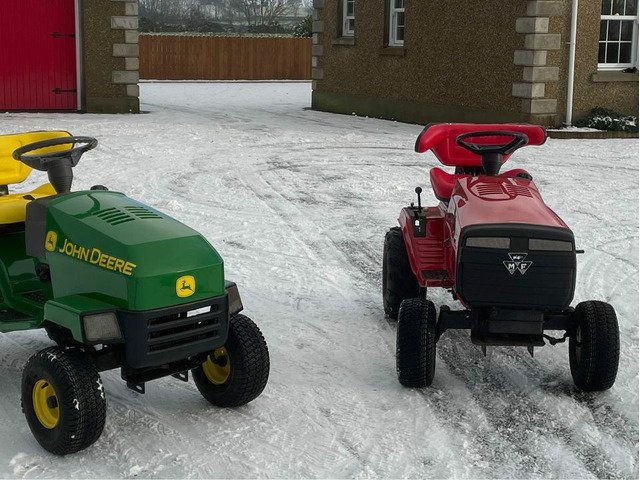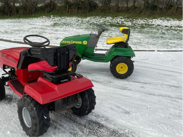 Lawnmowers converted to kids Tractors one John Deere 6 speed gearbox and one Massey Ferguson 5 speed gearbox