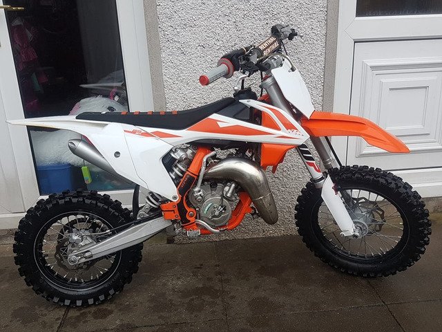 2018 ktm 65 bike is 100% ready to go has got big tyres on and have a set of small tyres for it hole shots aluminium throttle tube gripper seat cover this was are spare bike