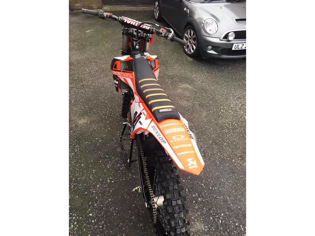 2017 KTM SXF 450....bike is immaculate with spare set of plastics...few wee trick bits 60hrs From new...oil /filters all just done...tyres chain sprockets all 95% ..x2 map settings...Traction control/Launch control...and Launch control device fitted to forks....£4,300 ono
