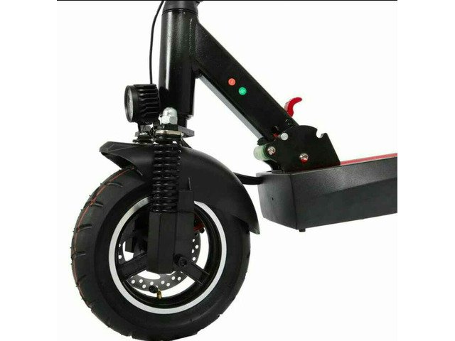 4.The e-scooter carries 10*3.0" inflatable tire, with disc brake and LED display.