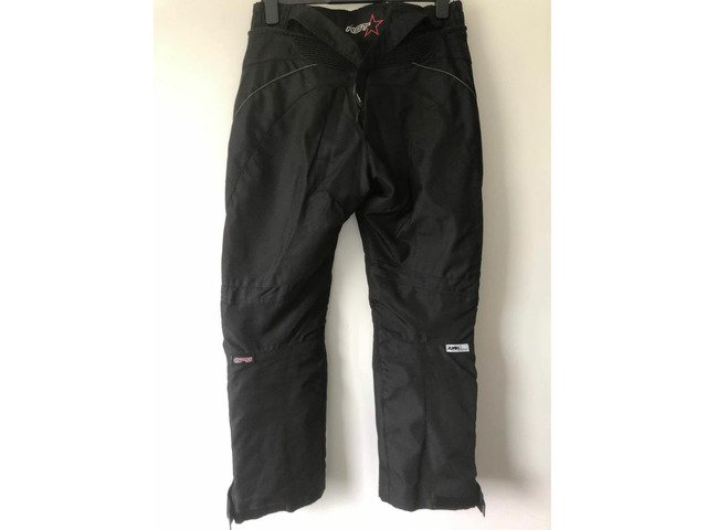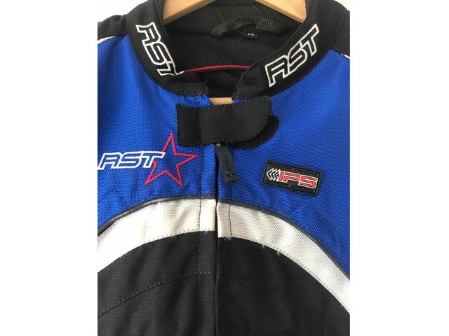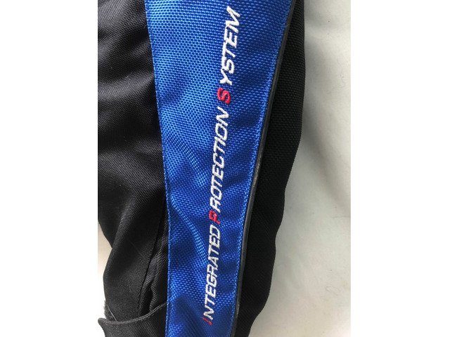 Fab ladies gortex two-piece. Jacket and trousers can be worn separately or zipped together to create weatherproof cosy one-piece. Jacket 14 trousers 12 but honestly would be better suited to someone size 8-10. Has shoulder, elbow and knee protectors. Zip ankles to fit over boots plus loads of pockets. Warm wind proof and weatherproof.