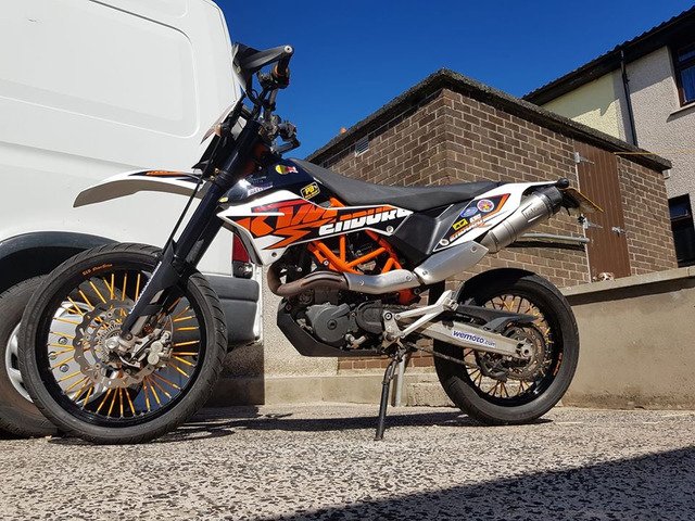 Carbon tipped stainless Leo vince slip on pipe, done roughly 7k on my ktm 690 enduro will fit ktm 690smcr/enduro and husky 701sm/enduro upto 2018 models. Great sounding exhaust and good condition (never offroad)