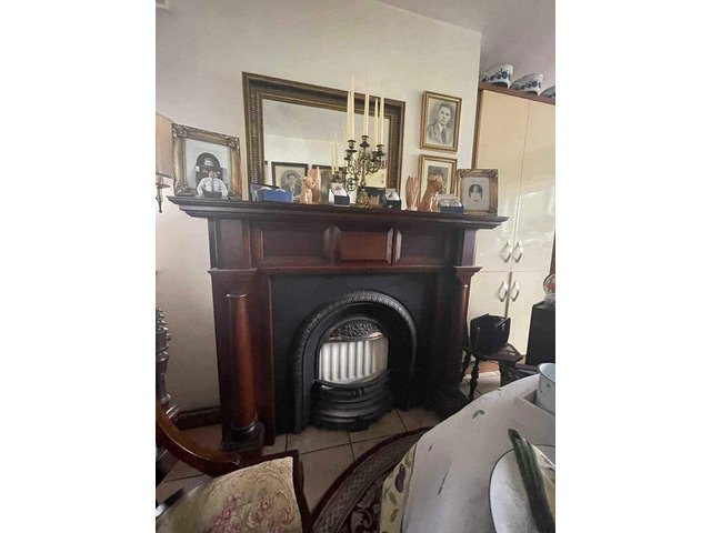 Large beautiful mahogany fireplace surround with arched cast iron insert in lovely conditition collection only from maghera area thanks