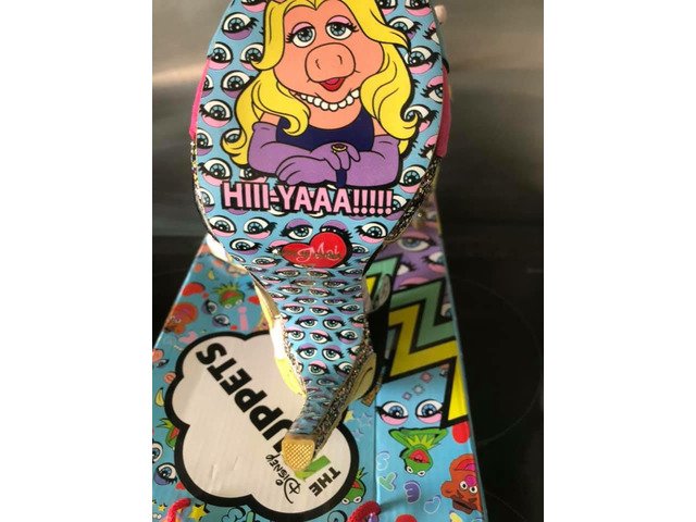 Beautiful never worn size 4 IR Miss Piggy high heel sandals with box. Gorgeous quirky and sparkly!