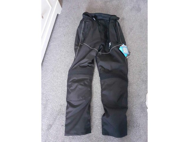 Waterproof cordura textile motorbike trousers NEW still have tags on.Got a few months back but only got trying them on and too long on leg for me .