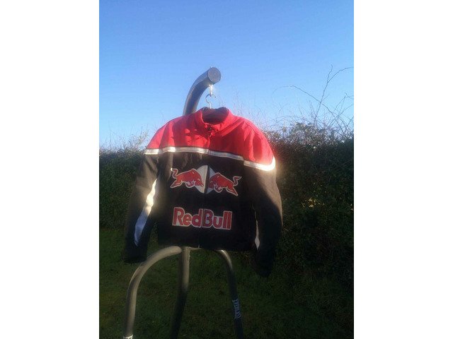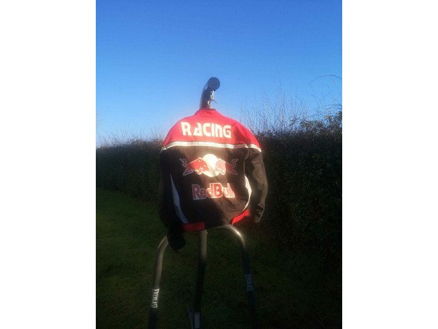 Red bull racing motorbike jacket. I think it's xxl. Has been used regularly but no scuffs and tears. Back protector and elbow protector. May need washed