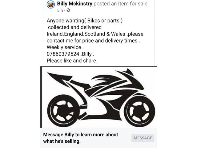 We collect & deliver all types of bikes and parts .